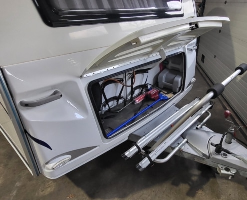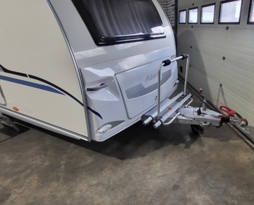 Deze Adria beschikt over 2 fietsendragers, fietsendrager voor 2 fietsen voorop (merk: Beaut max. 50 kg) en een fiesten drager achterop voor 2 fietsen.