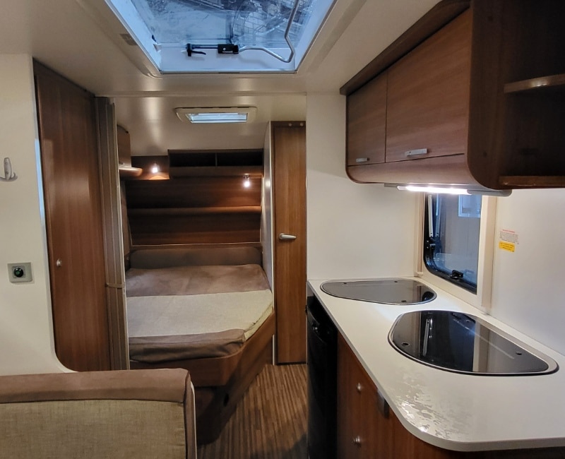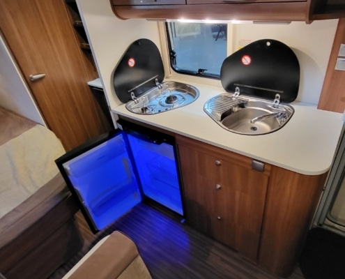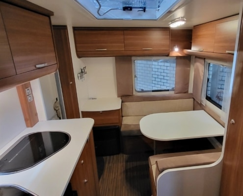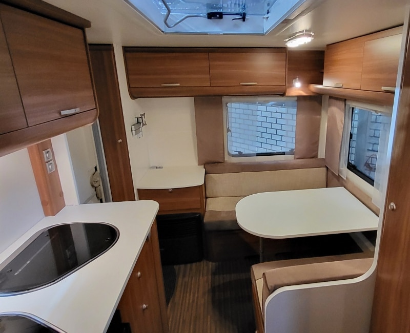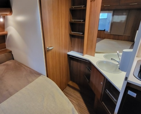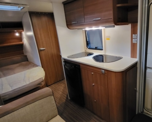 Keuken bevindt zich in het midden van de caravan.