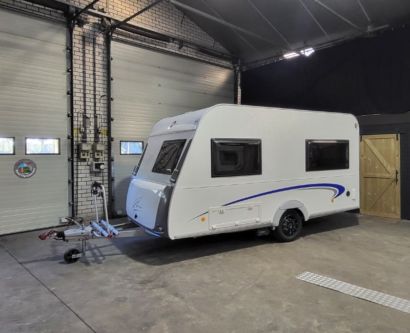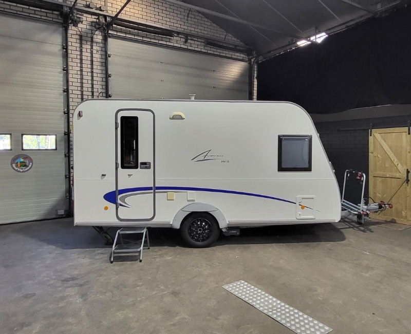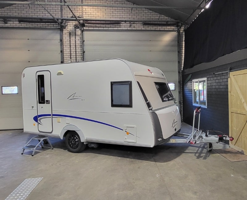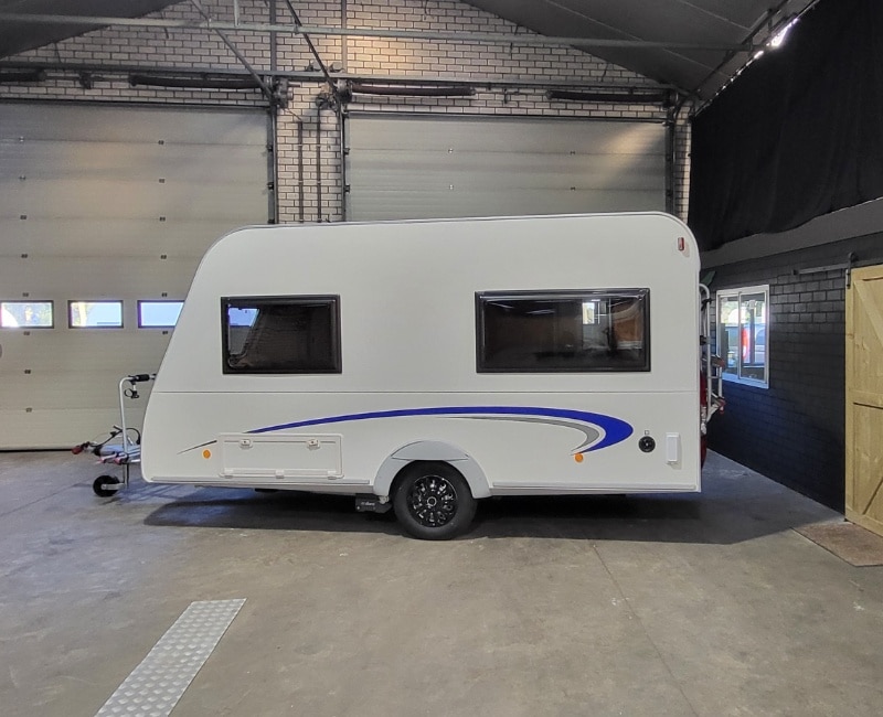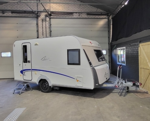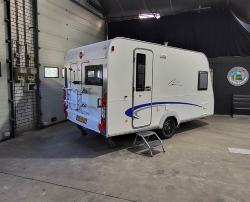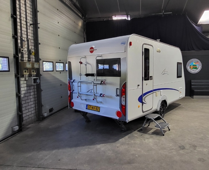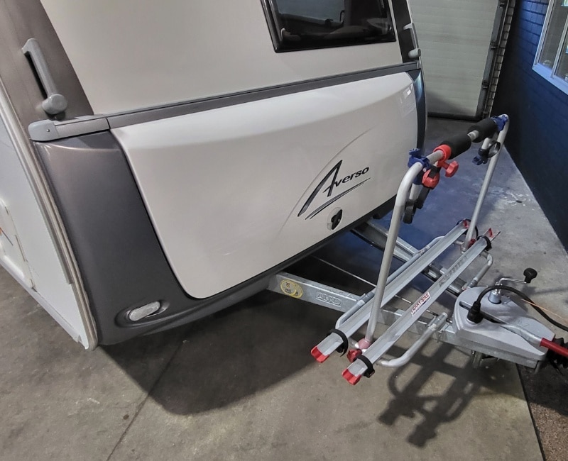 Caravan is inclusief fietsendrager voorop en een achterop.