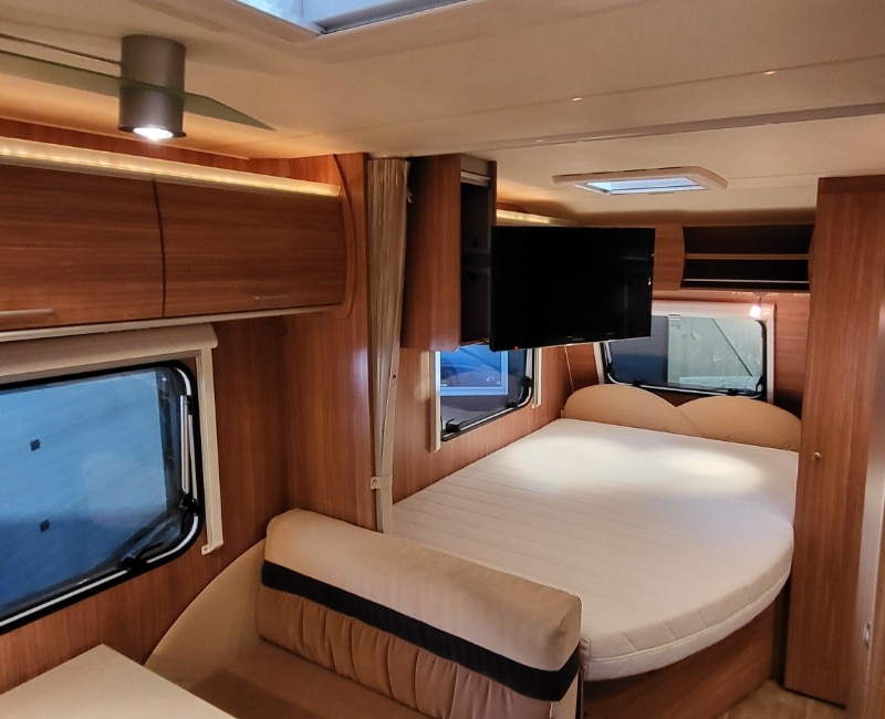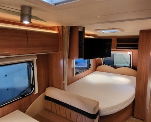 Plisse hordeur aanwezig en in de caravan is een uitschuifbare televisiebeugel met een nieuwe televisie aanwezig.