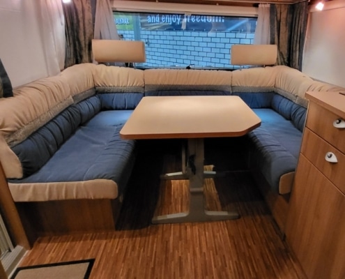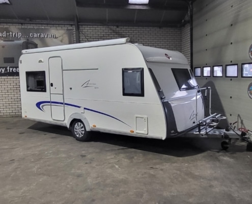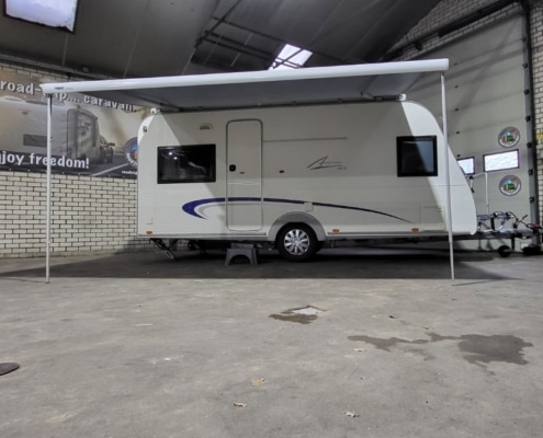 Caravan is inclusief een cassette luifel (merk: Omnistor) en een vol automatische mover (merk: Truma).