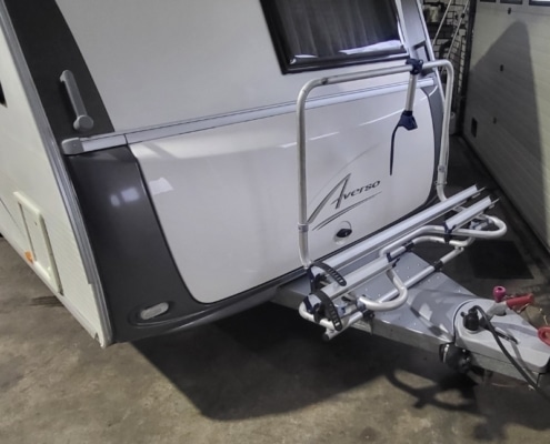 Voorop de dissel is een fietsendrager aanwezig (merk: Thule max. 50 kg).