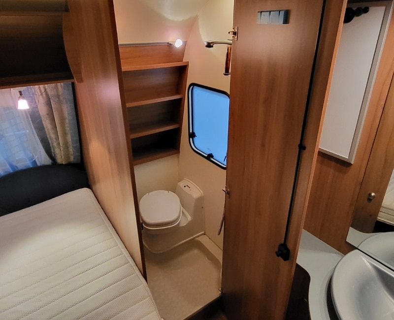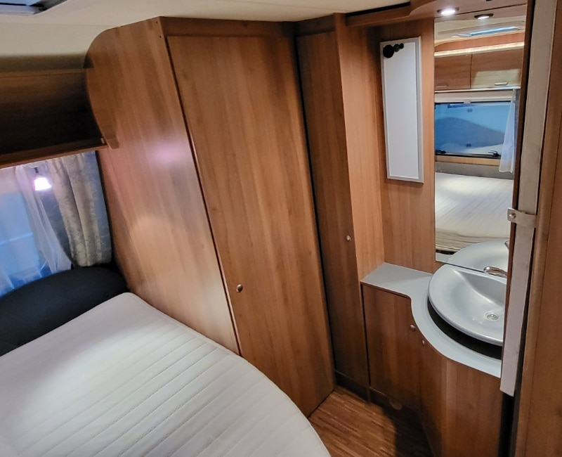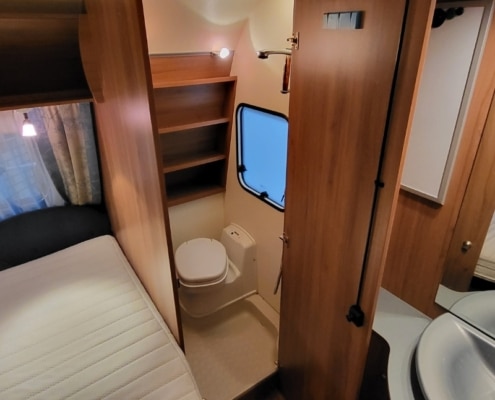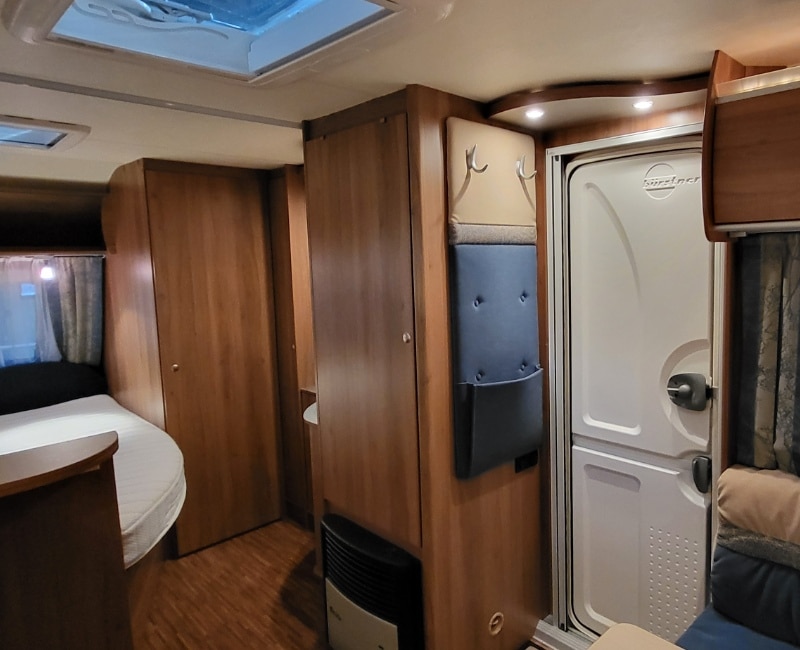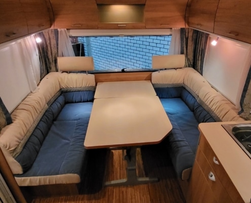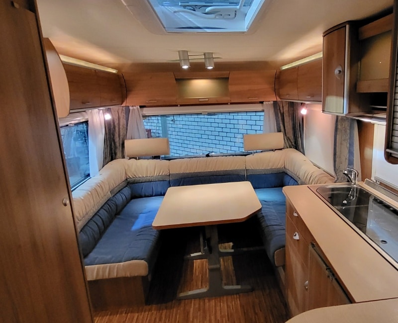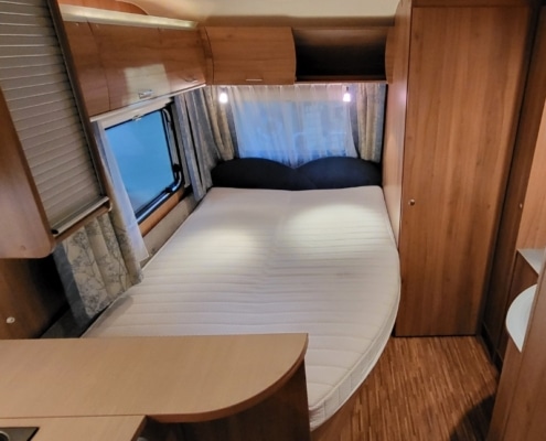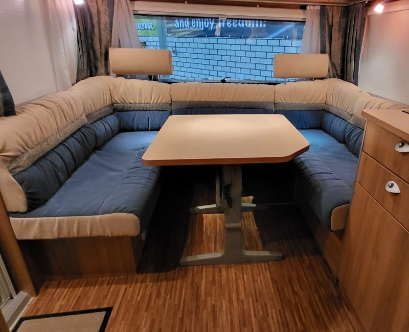 Deze caravan beschikt over een Frans bed en een rondzit.