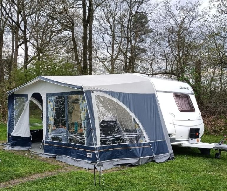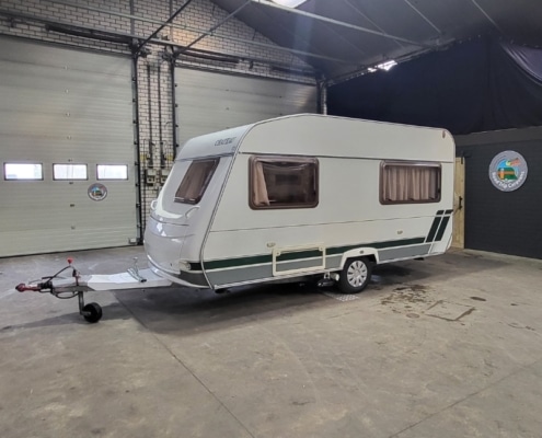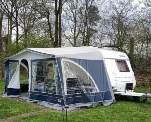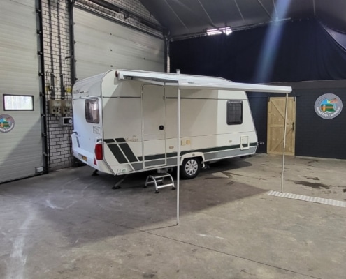 Caravan is verder voorzien van een cassette luifel (Thule omnistor) en een voortent (Dorema).