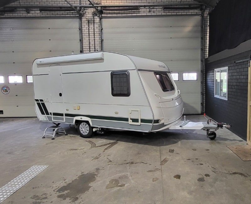 Ideale licht gewicht caravan met een Frans bed en een mover half automatisch.