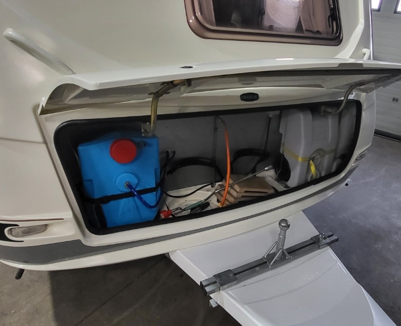 - Reservewiel (onder de caravan)