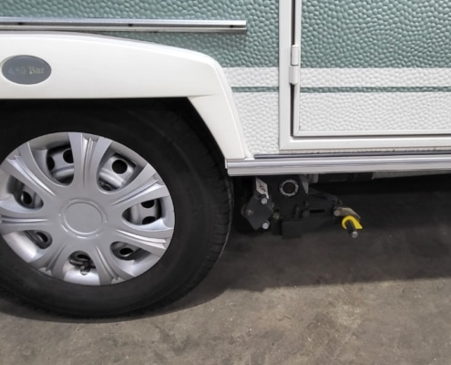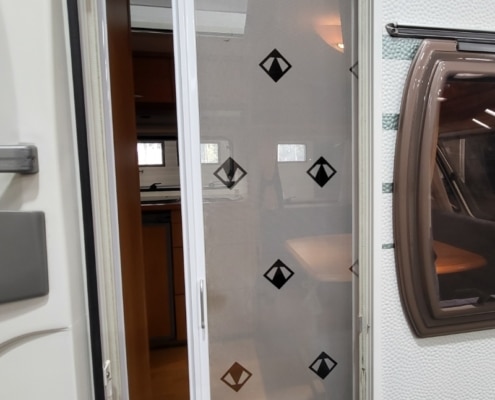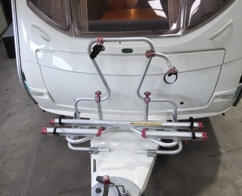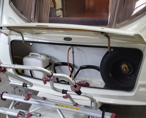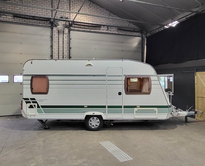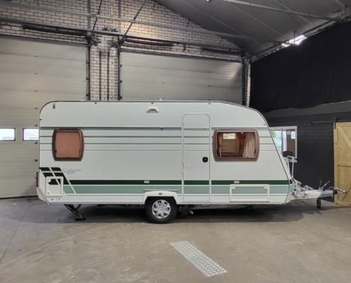 Caravan is voorzien van een plisse hordeur en 2 serviceluiken.