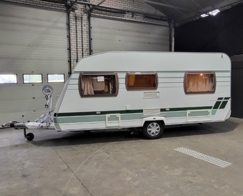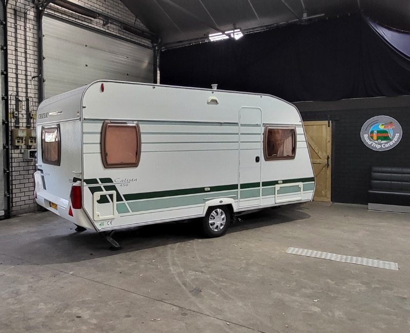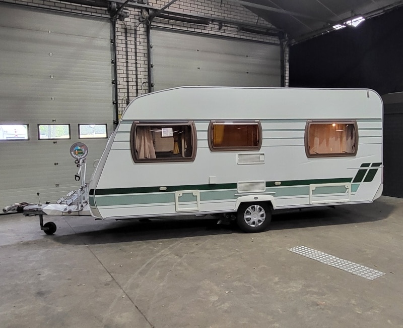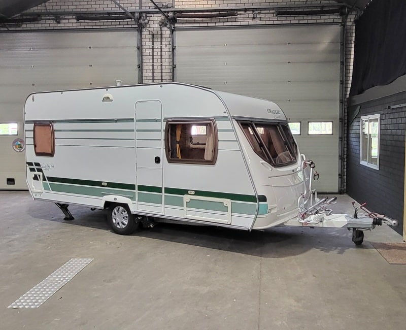 (Opmerking: heeft wel een paar kleine deukjes van tent stokken aan de buitenzijde en 2 strepen/vegen aan buitenzijde, de 2 strepen/vegen zitten aan de andere zijde/links van de caravan ).