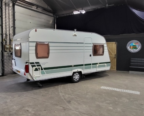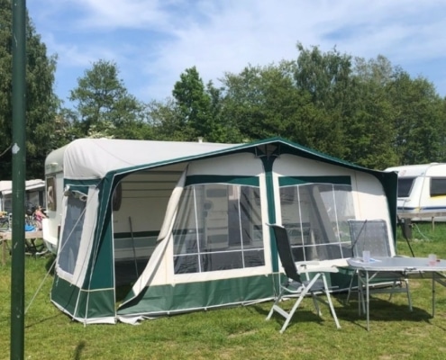 Caravan is inclusief een mover en een voortent (merk: Walker Esprit).