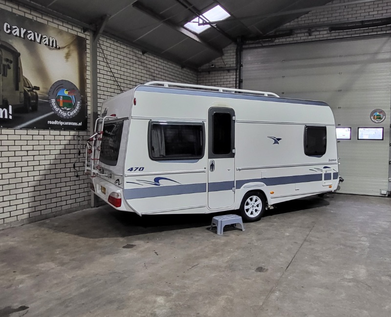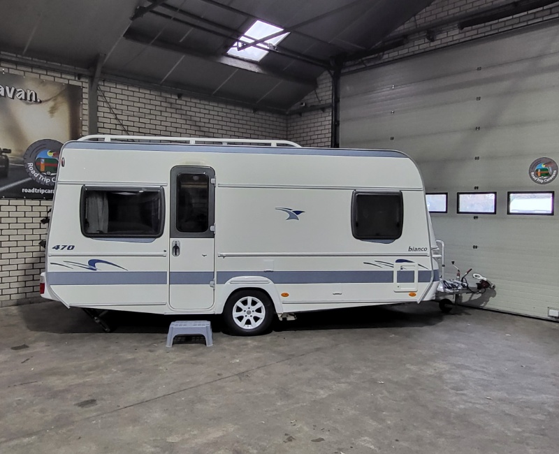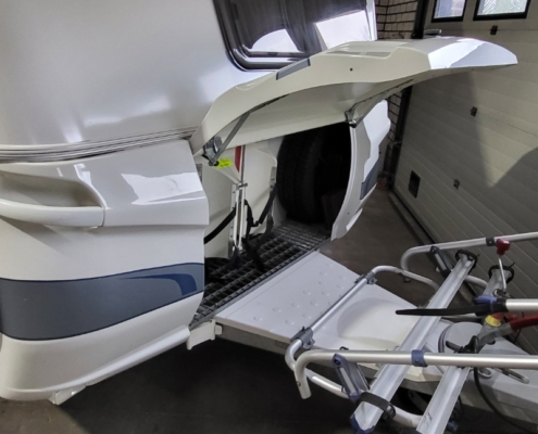 De caravan is inclusief twee fietsendragers een voorop en een achterop.