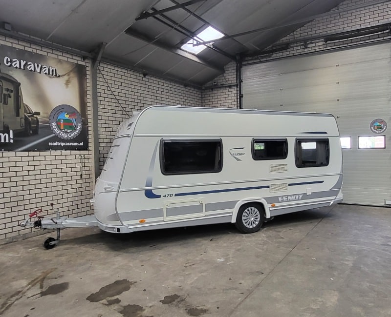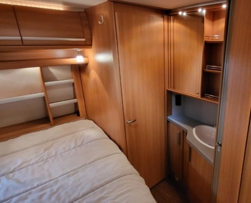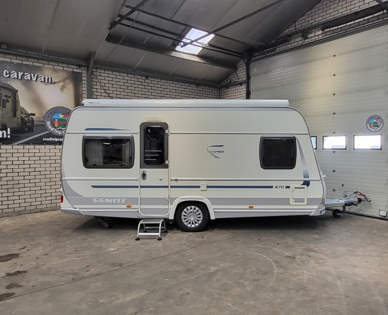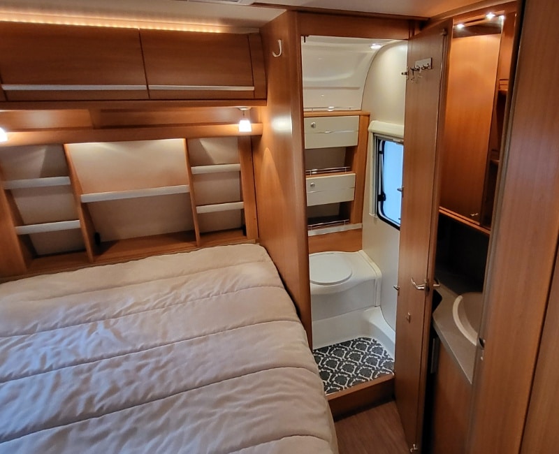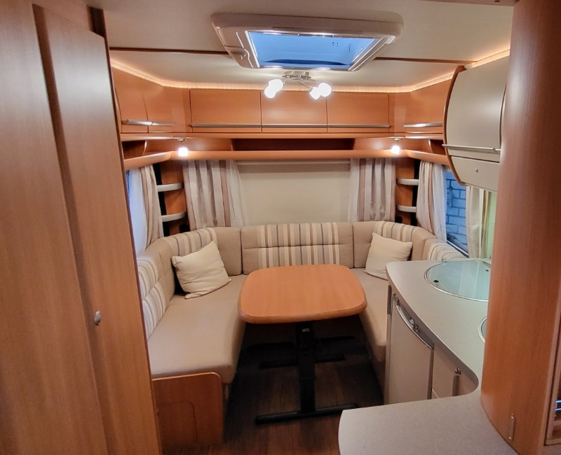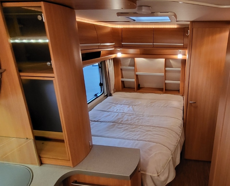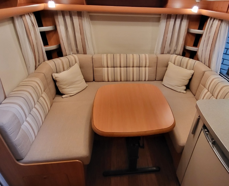 Deze caravan beschikt over een Frans bed en een rondzit.