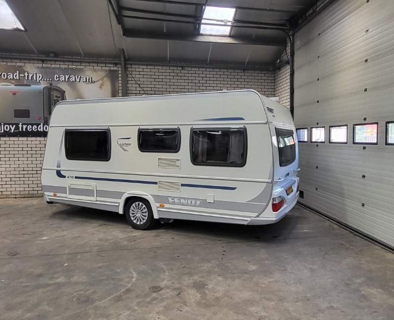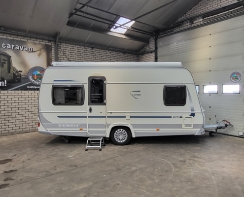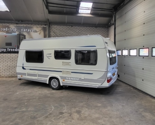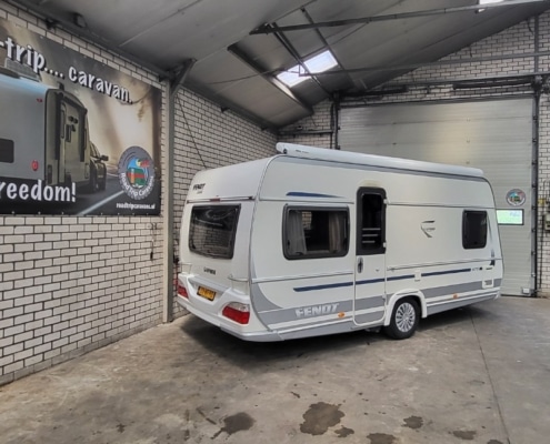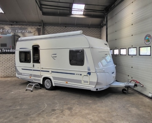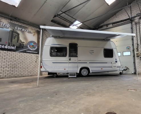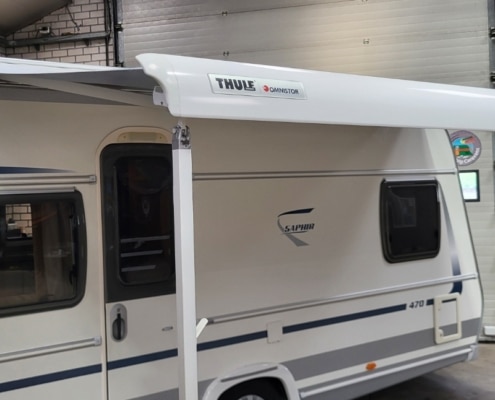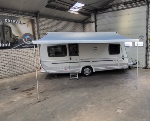 Caravan is inclusief een cassetteluifel (Thule Omnistor) met zijwanden en een zonscreen.