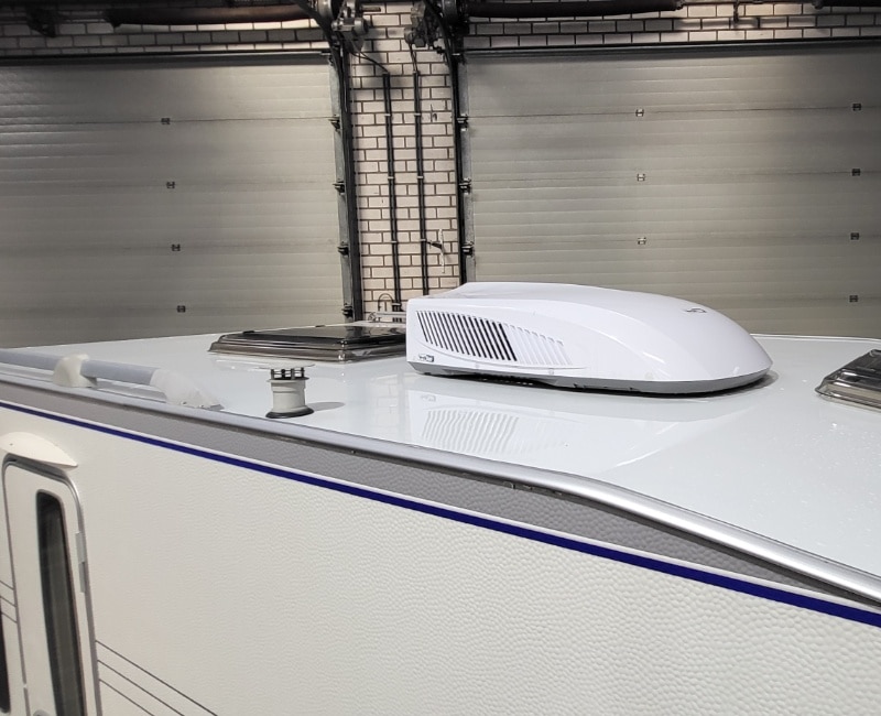 Caravan is inclusief een dak airco (merk: VechLine) en een mover half automatisch (merk: Reich).