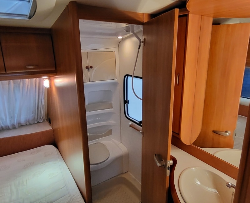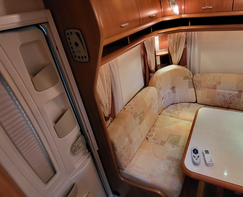 Goed onderhouden en nette Hobby 495 Excellent uit 2008 met een Frans bed en een rondzit.