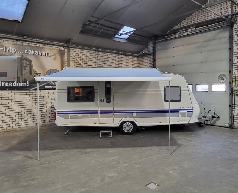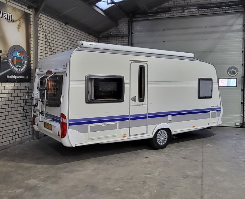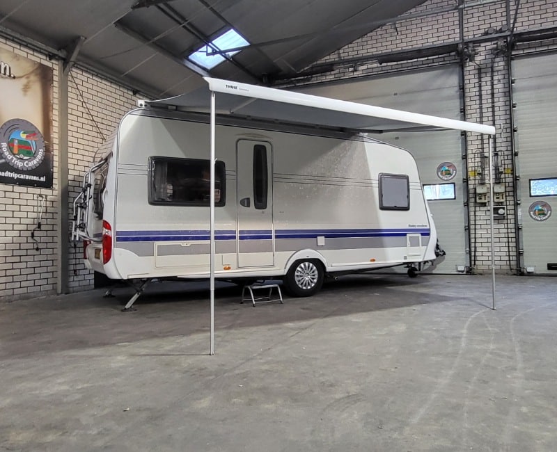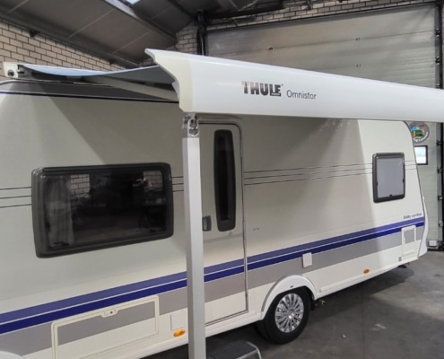 Caravan is voorzien van een Thule omnistor cassette luifel en een voortent met aluminium frame.