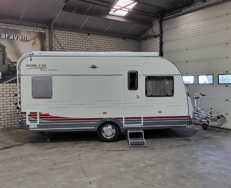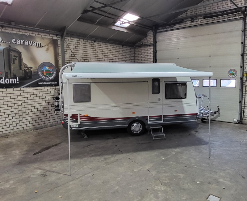 Achterop de caravan is een Thule fietsendrager met een max. gewicht van 60 kg.