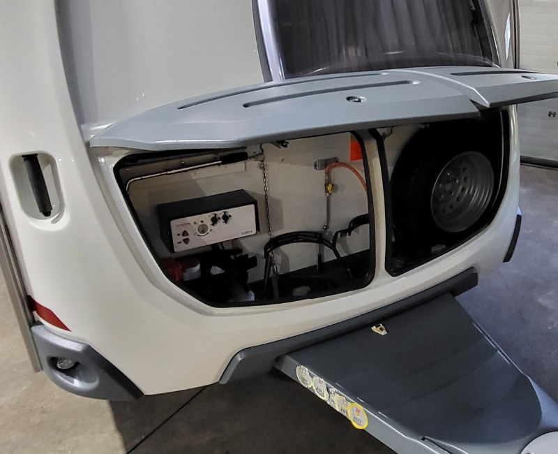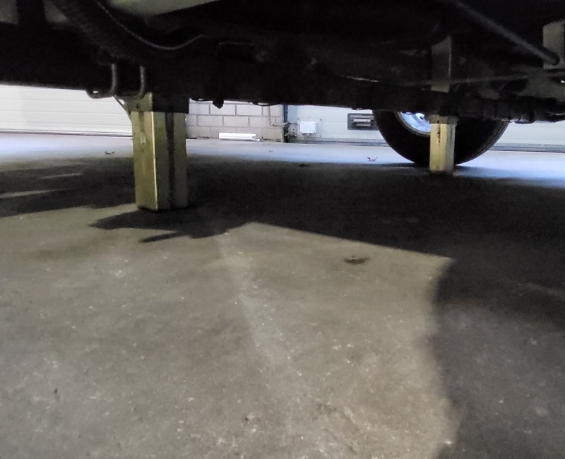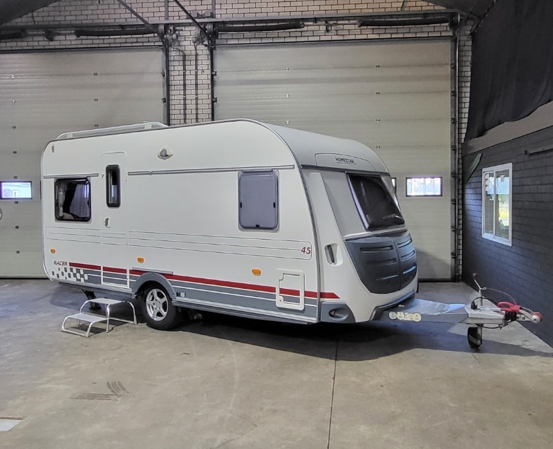 Hydraulisch level systeem is aanwezig om de caravan stabiel neer te zetten.