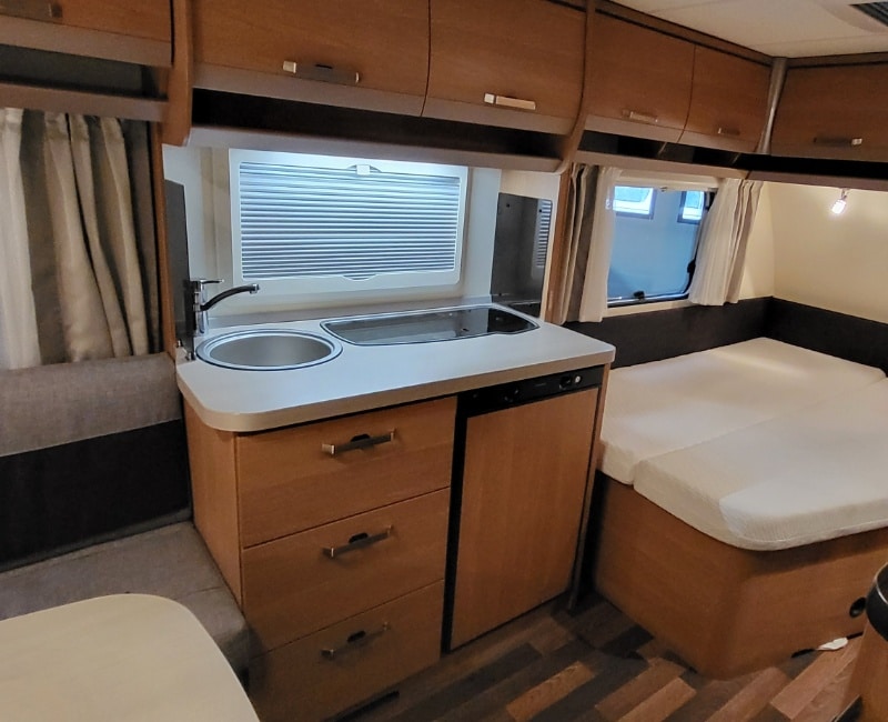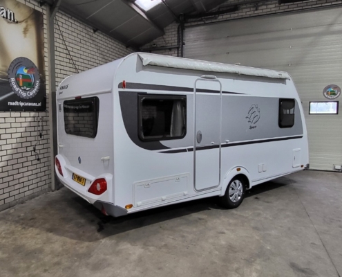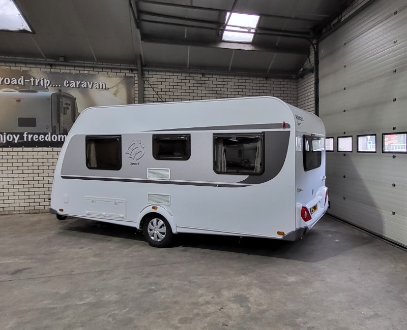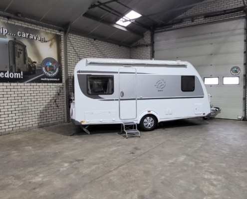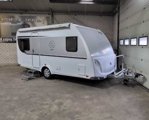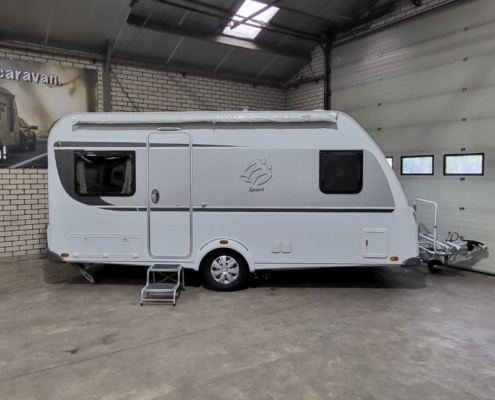 Caravan is voorzien van een degelijke en sterke zakluifel met zijwanden en voorwand van het Duitse merk Wigo.