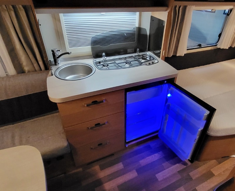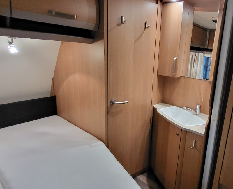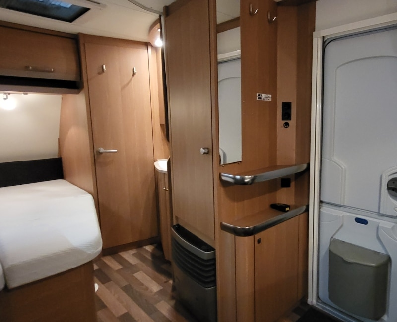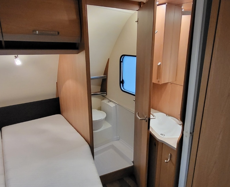 Verder is deze caravan voorzien van een was en toilet ruimte.
