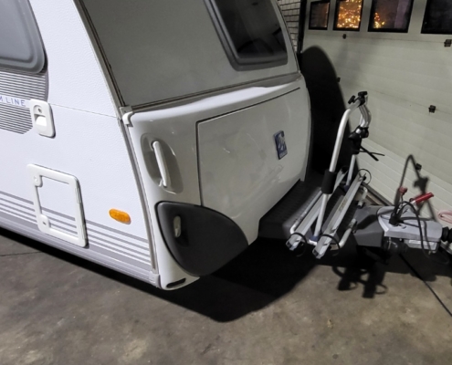 - Reservewiel (Met beugel onder de caravan)