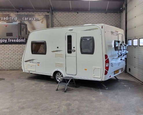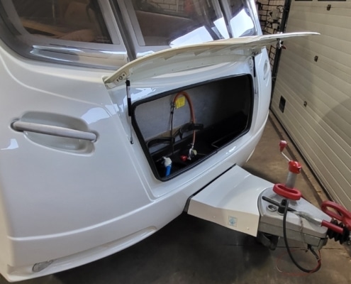 • Reservewiel (onder de caravan)
