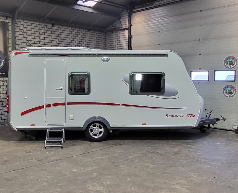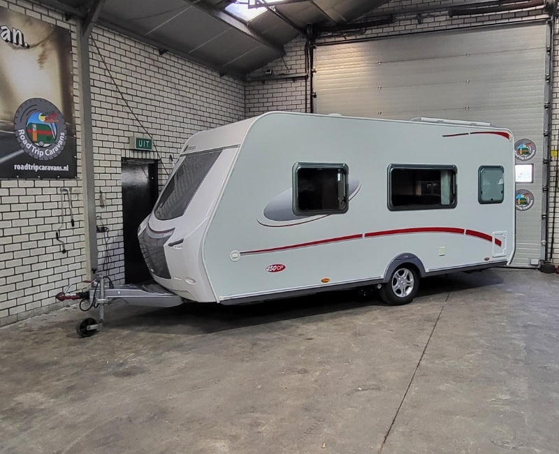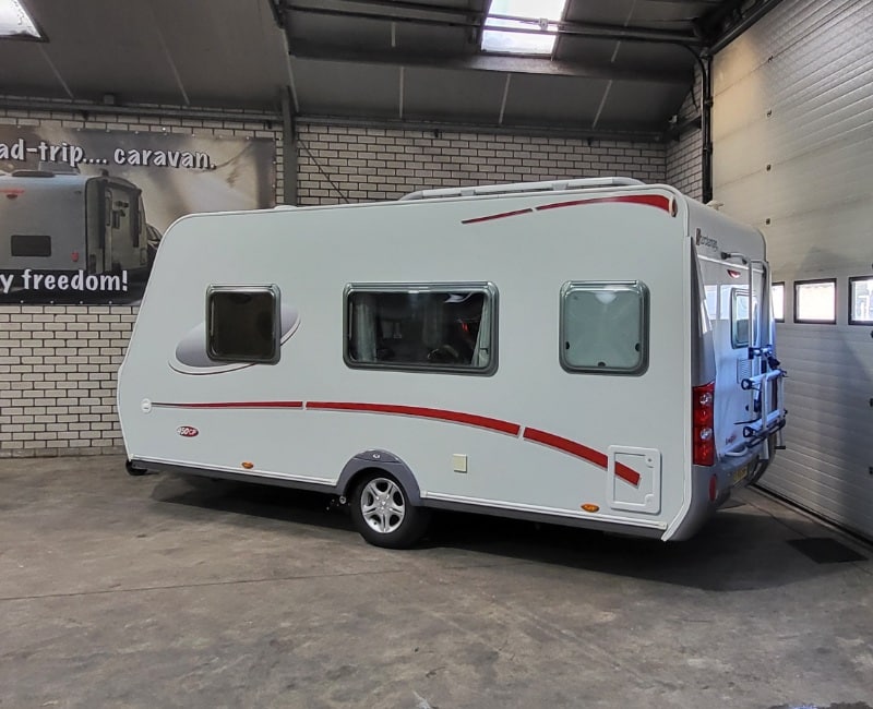 Caravan ziet er zeer mooi uit met gladde beplating en licht metalen velgen.