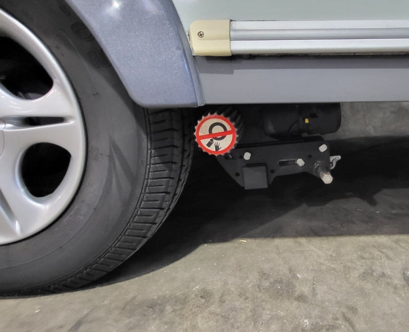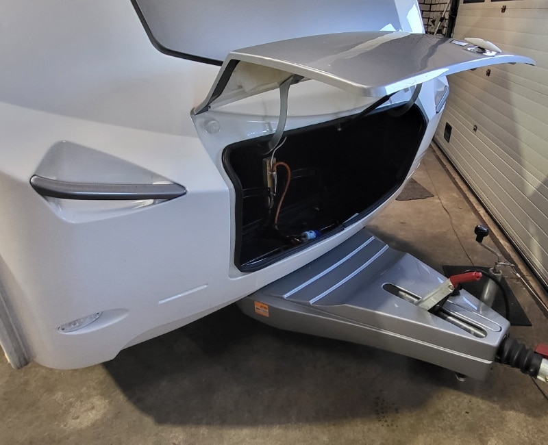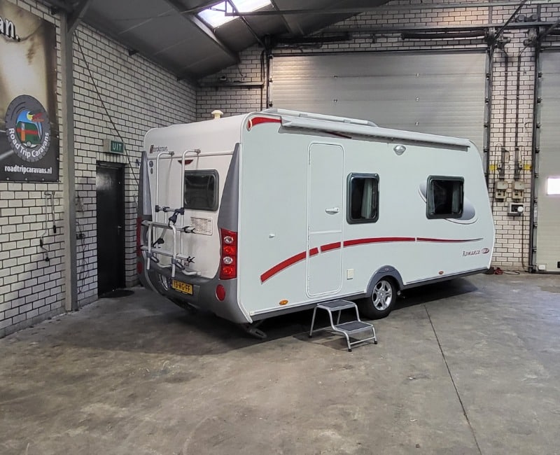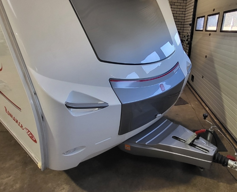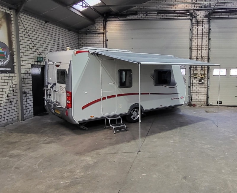Fietsendrager bevindt zich achterop de caravan.