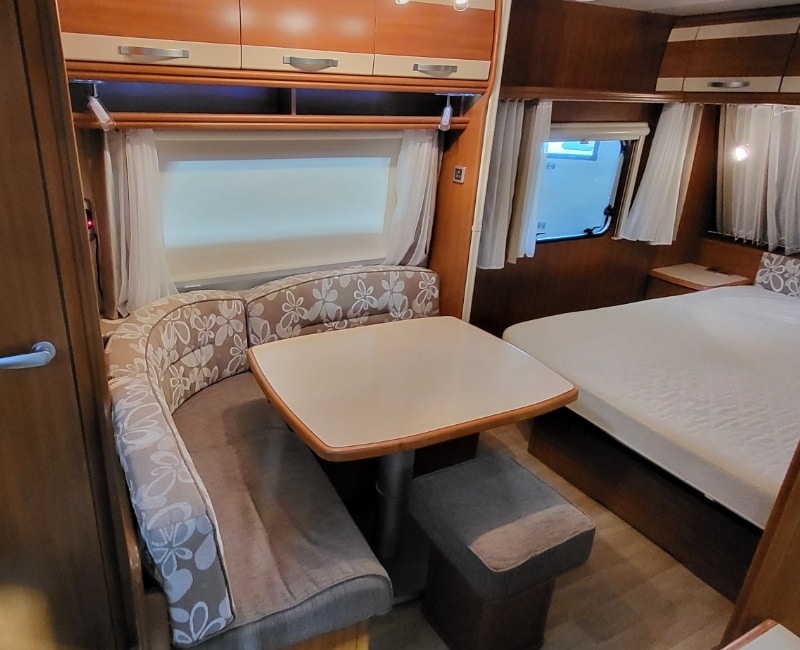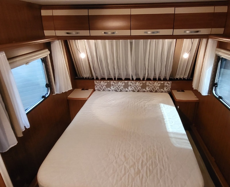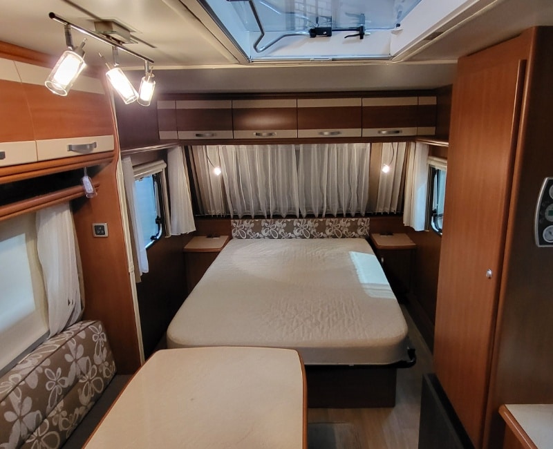 Queensbed bevindt zich voorin de caravan.
