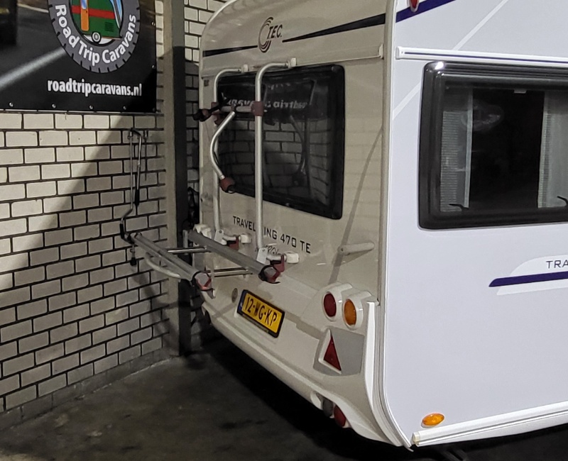 Achterop de caravan bevindt zich een Fiamma fietsendrager met een max. gewicht van 60 kg.