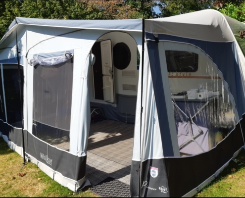 Caravan is inclusief een Walker pioneer voortent met aluminium frame.