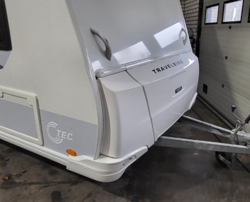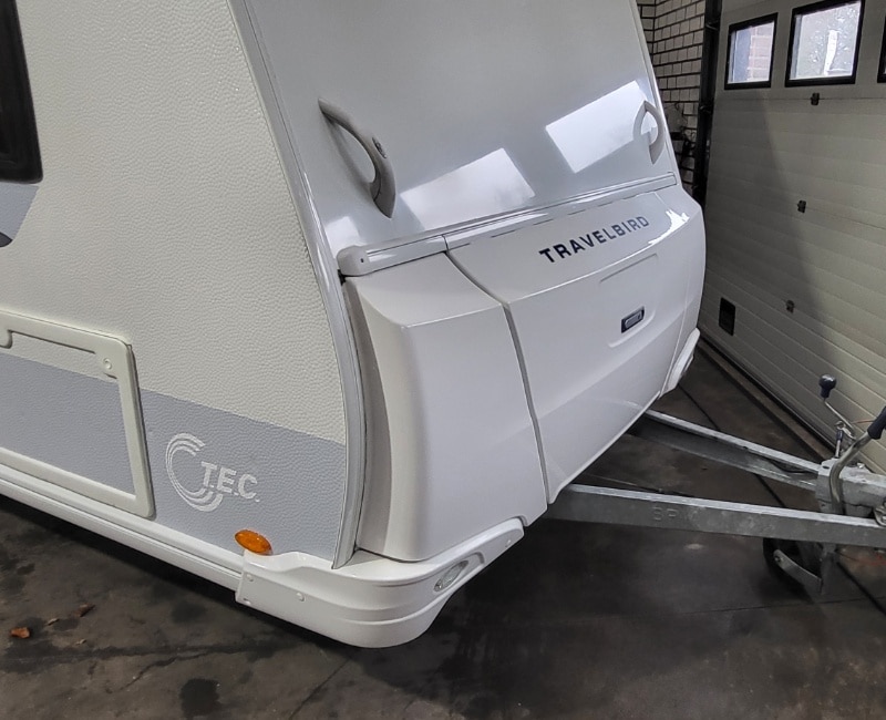 Minpunt caravan: paar putjes rechtsvoor enkele/achterzijde enkele en links achter enkele