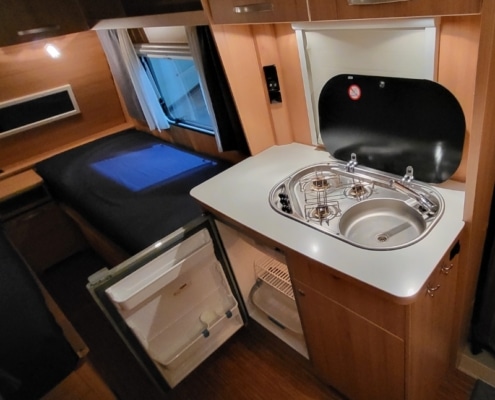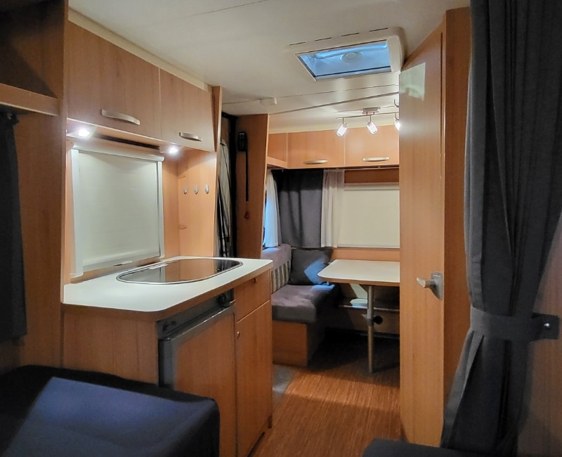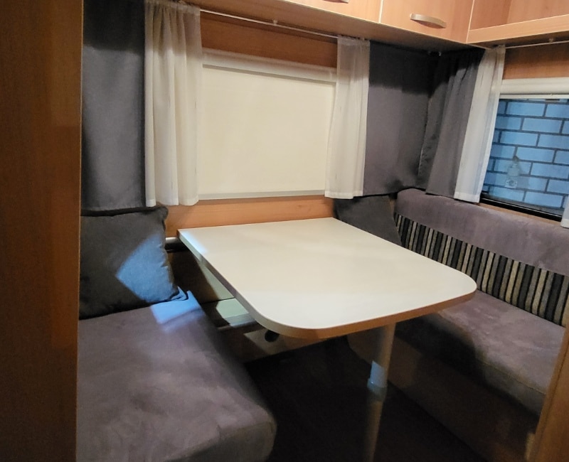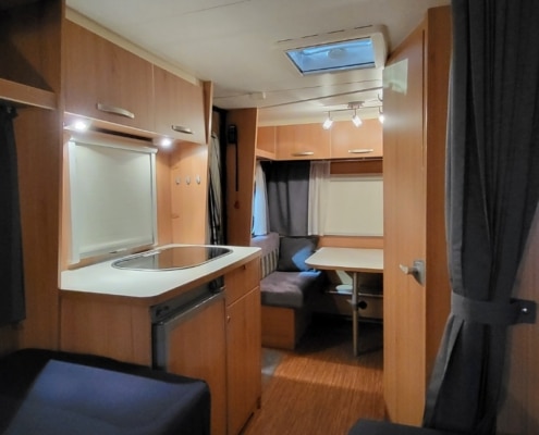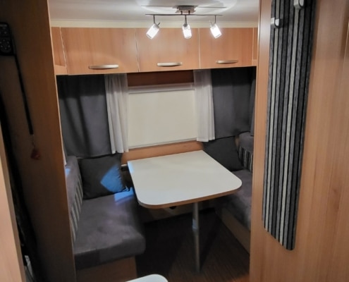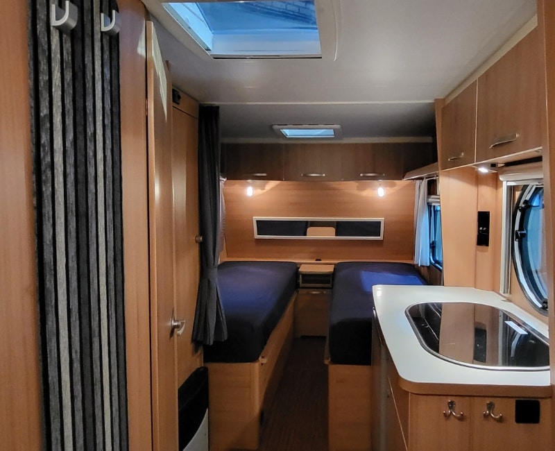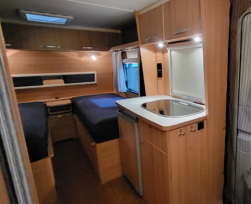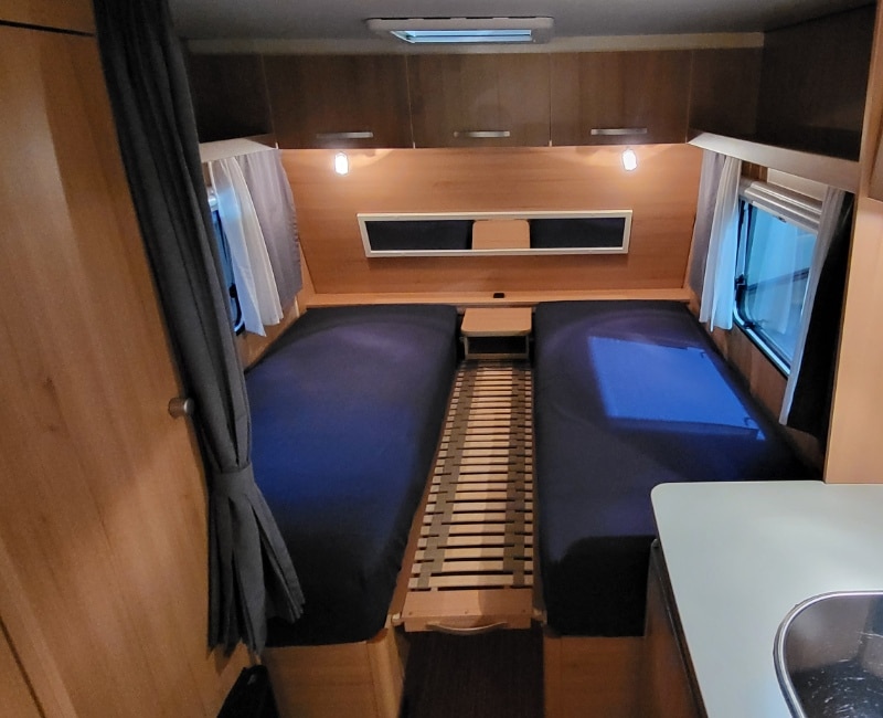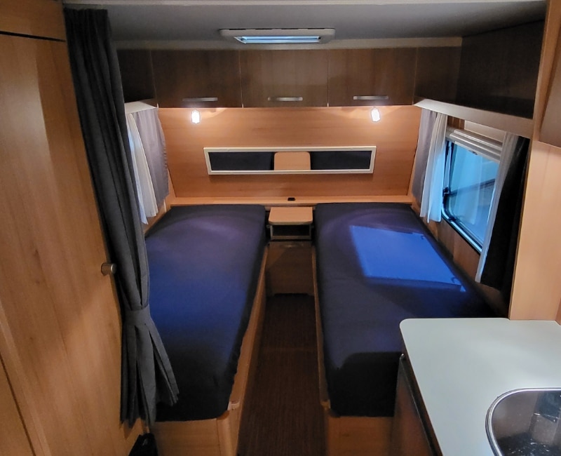 Deze complete caravan is voorzien van enkele bedden met goede matrassen.